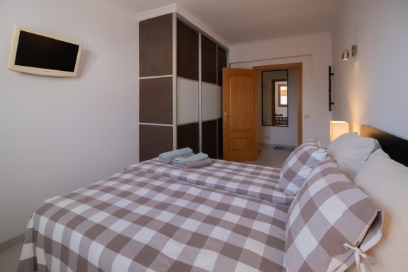 Distribución funcional y cómoda, recibidor independiente, Salón-comedor con salida a balcón exterior, Cocina de madera totalmente equipada, con gas ciudad. Tres habitaciones, dos de ellas dobles y una tipo suite (Todas las habitaciones cuentan con armarios empotrados).