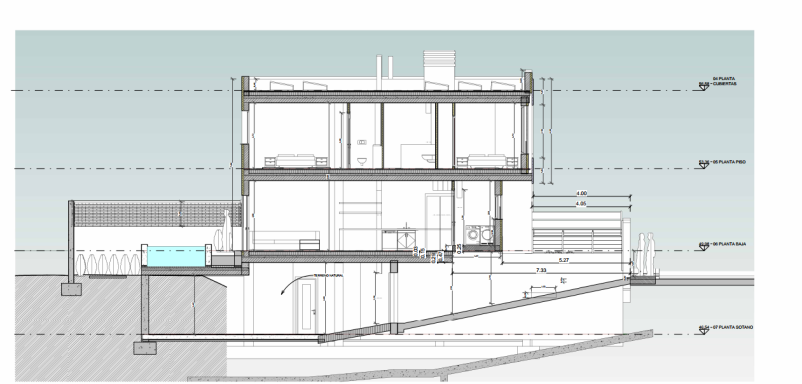 Esta fantástica villa está situada en una parcela de 580 m2, con 548 m2 construidos, divididos en planta sótano previsto para aparcamiento con capacidad para cinco o seis coches, planta baja prevista con salón comedor y cocina todo abierto, despensa, habitación doble con armario empotrado, un baño completo, otro baño con acceso desde el exterior para la piscina y porche, planta piso prevista con habitación principal con baño en suite y gran vestidor, dos habitaciones dobles con armarios empotrados, un baño completo y lavandería.