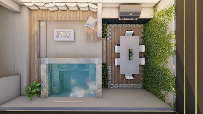 En el exterior está previsto una gran zona Solarium alrededor de la piscina.