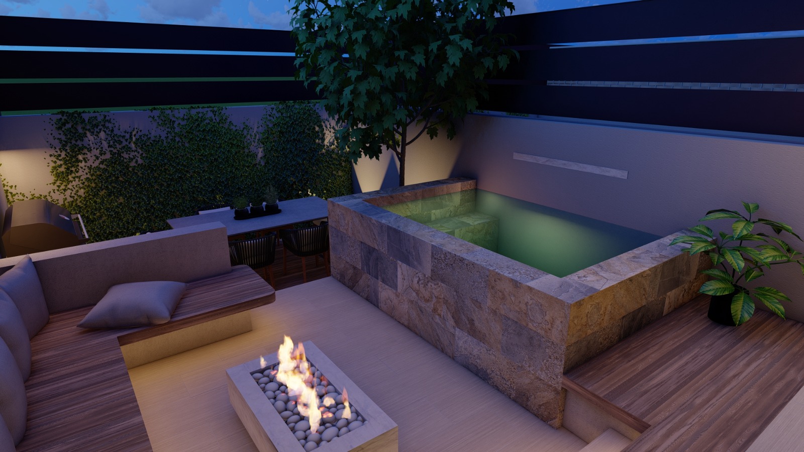 En el exterior está previsto una gran zona Solarium alrededor de la piscina.